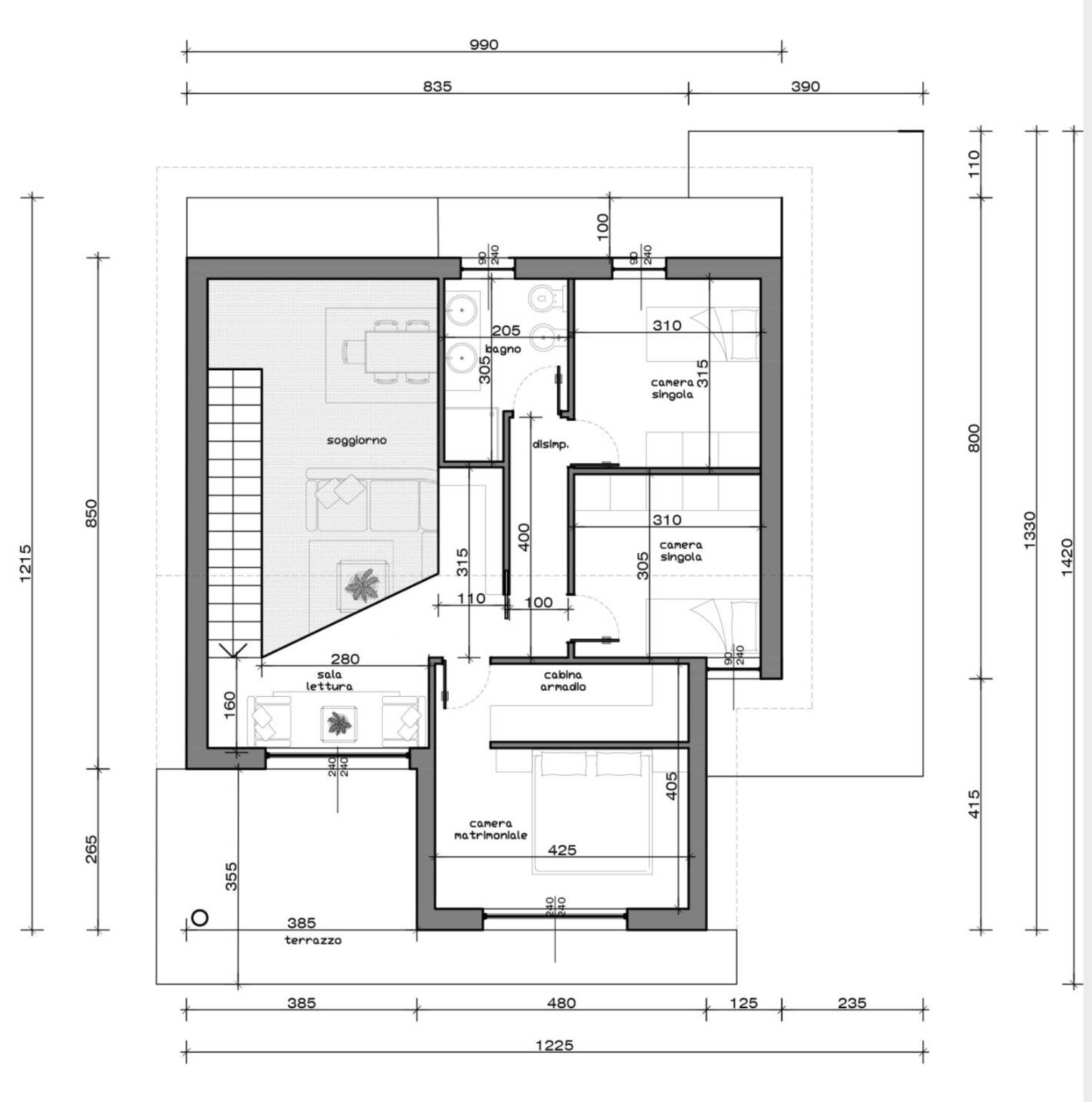 Superficie: 1205 mq di terreno pianeggiante.