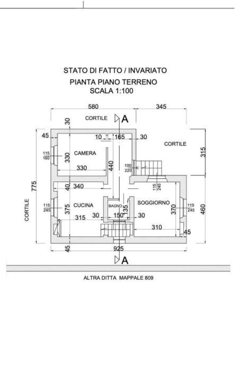 Piano terra (circa 125 mq): ingresso, cucinino, tinello, salone, due camere da letto, bagno, ampio porticato coperto con accesso diretto al giardino.
