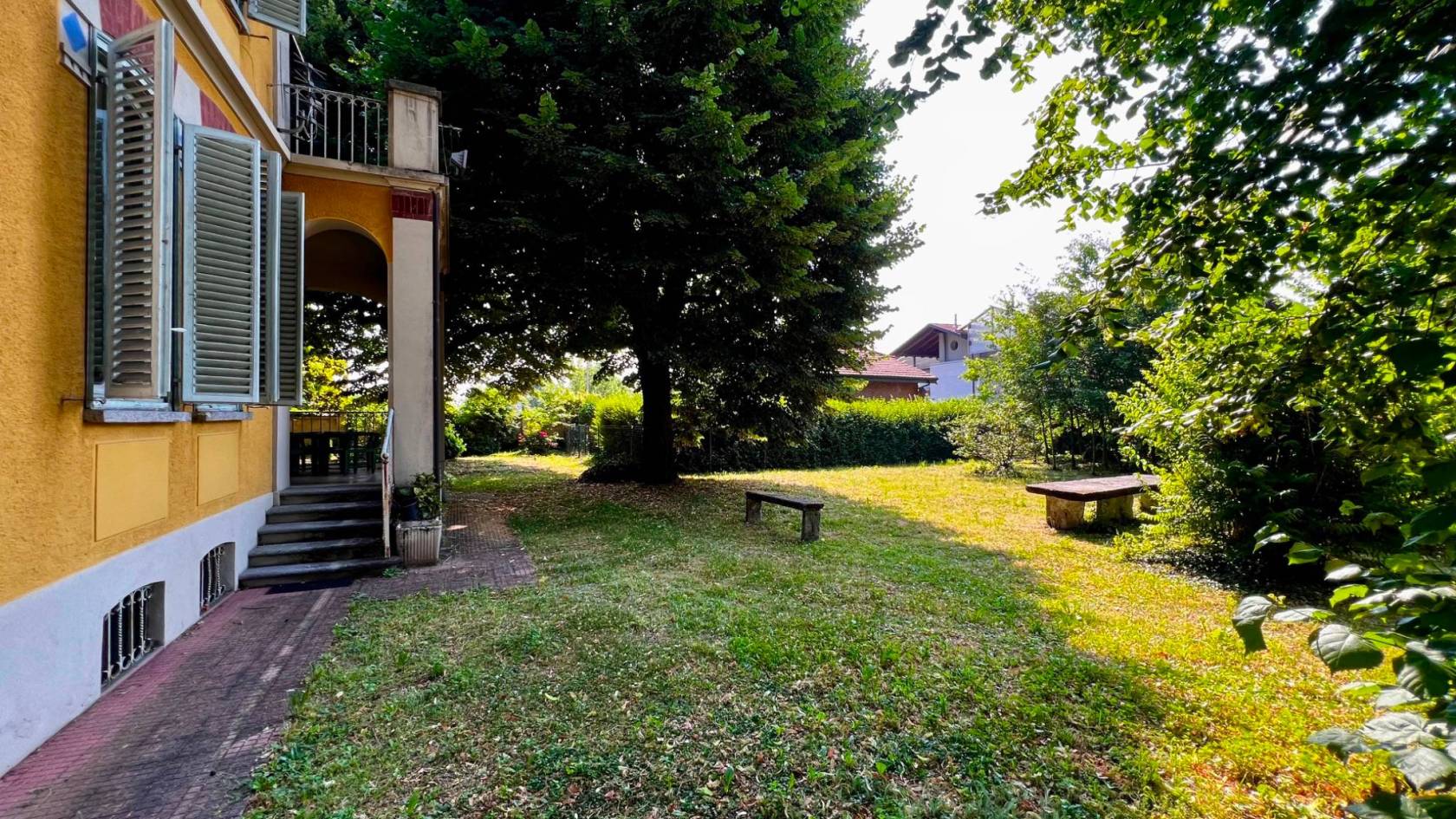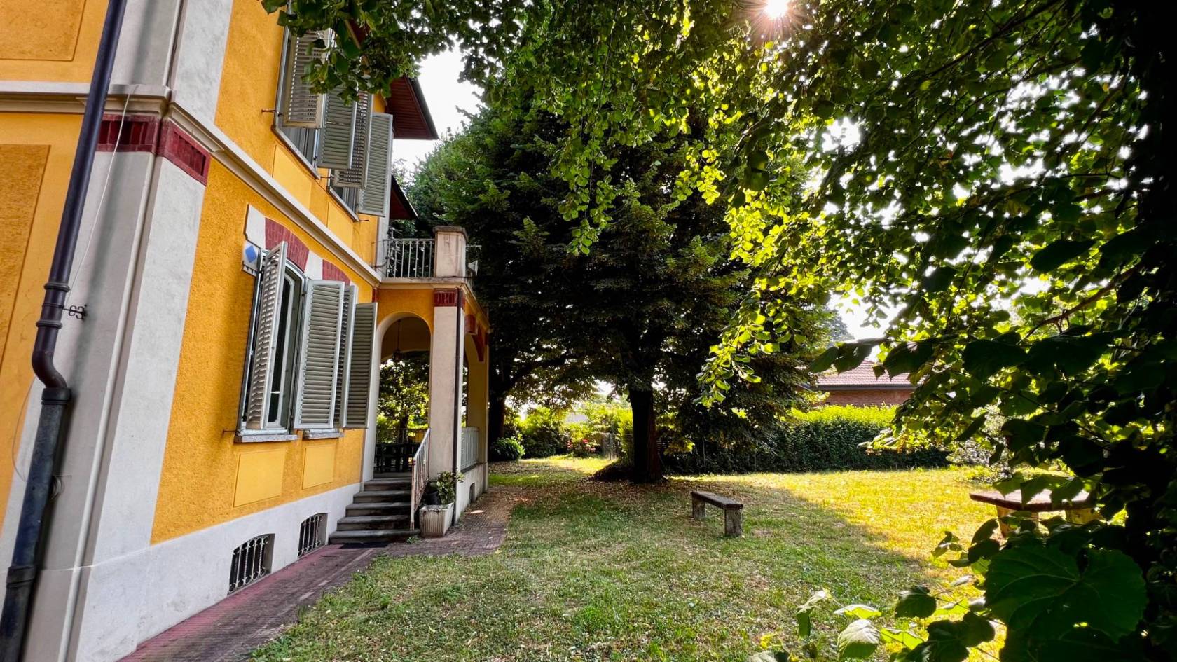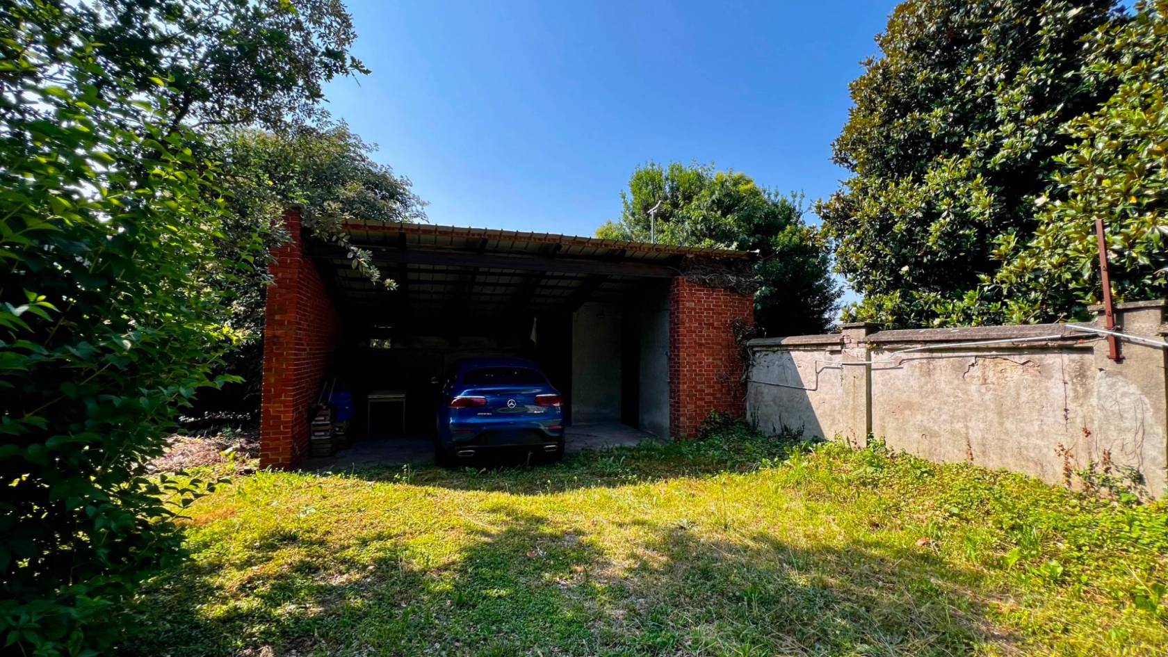 La proprietà si trova in via Mazzini 64, all'interno di un terreno recintato di circa 2.000 mq, con accesso carraio e pedonale privati, un grande giardino piantumato, una tettoia ad uso autorimessa/ricovero attrezzi e una dependance indipendente, perfetta come abitazione del custode, studio professionale o unità separata per familiari.