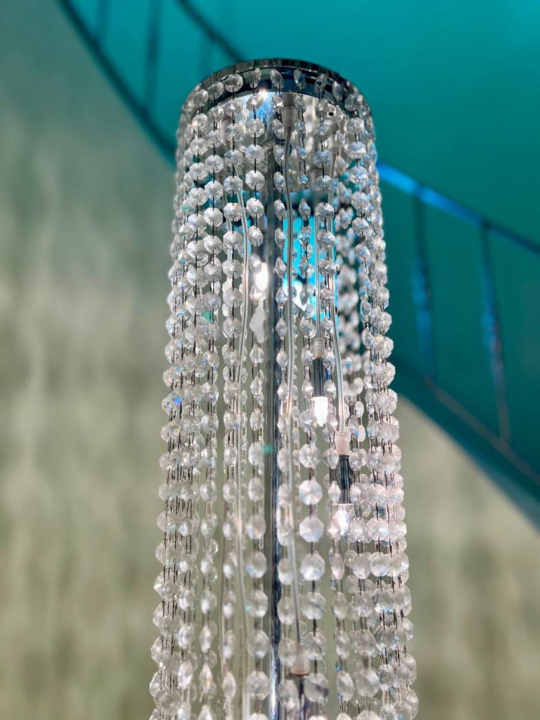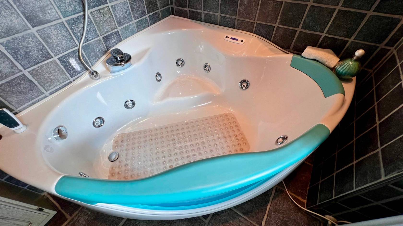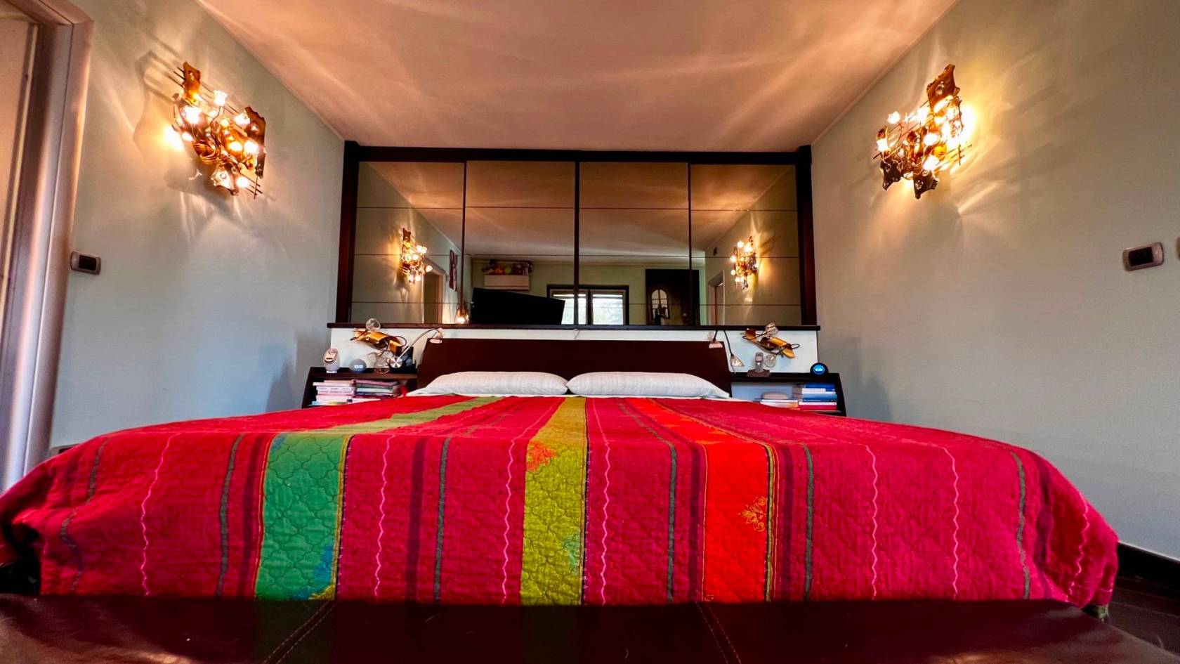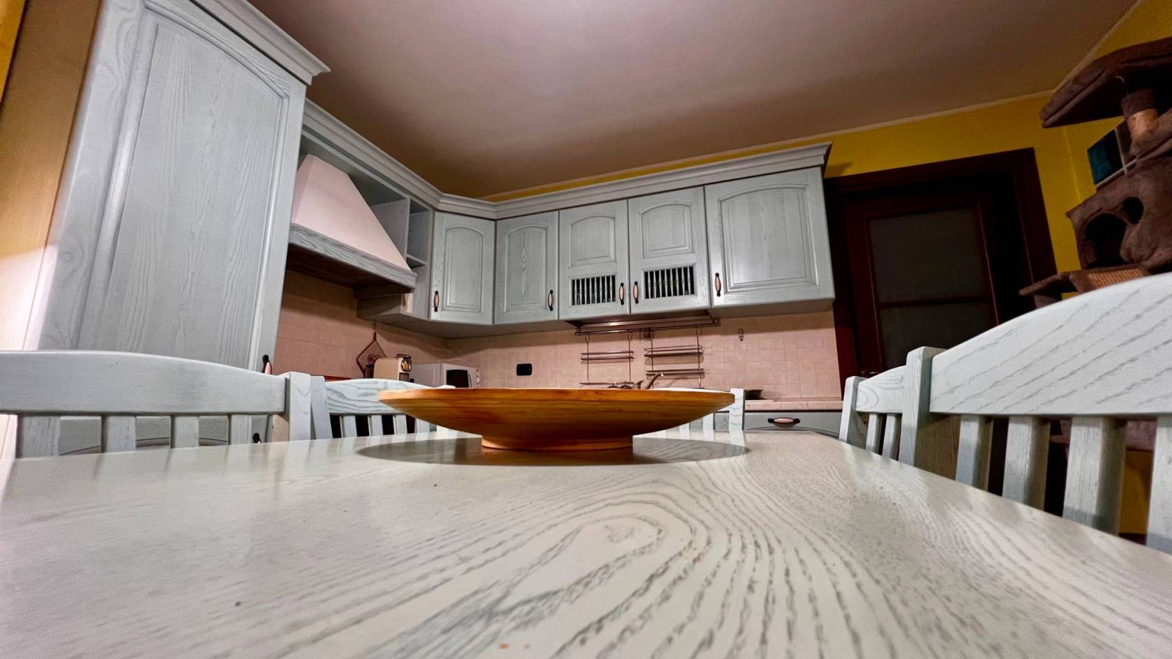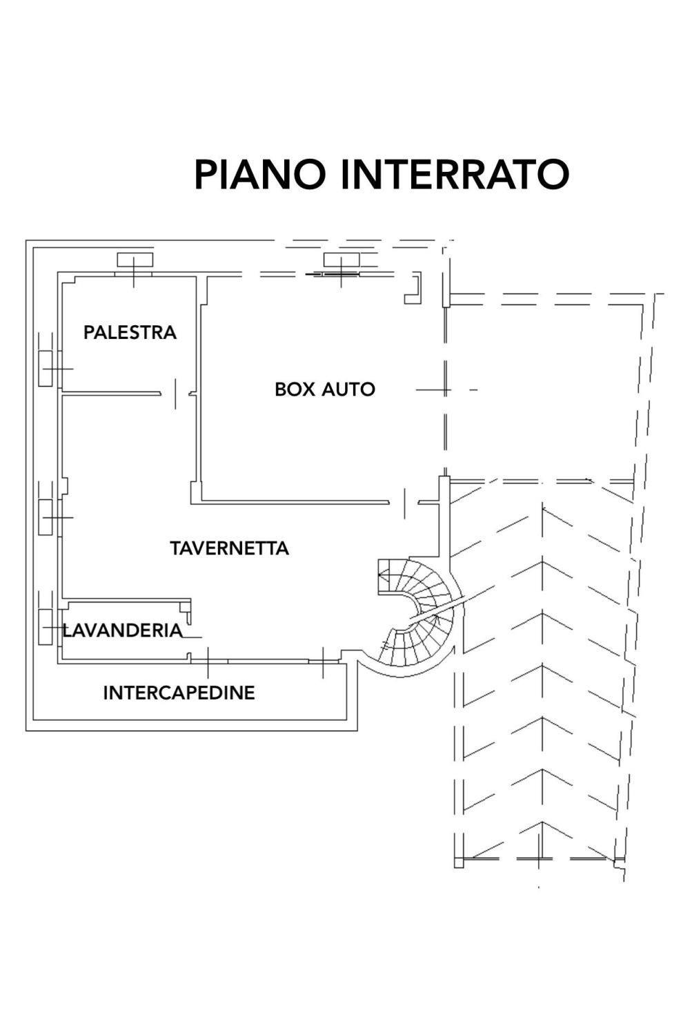 Dal soggiorno si accede al piano superiore tramite una scala a vista di forma rotonda, collocata all'interno della torretta della casa, un elemento architettonico distintivo che collega armoniosamente i piani.